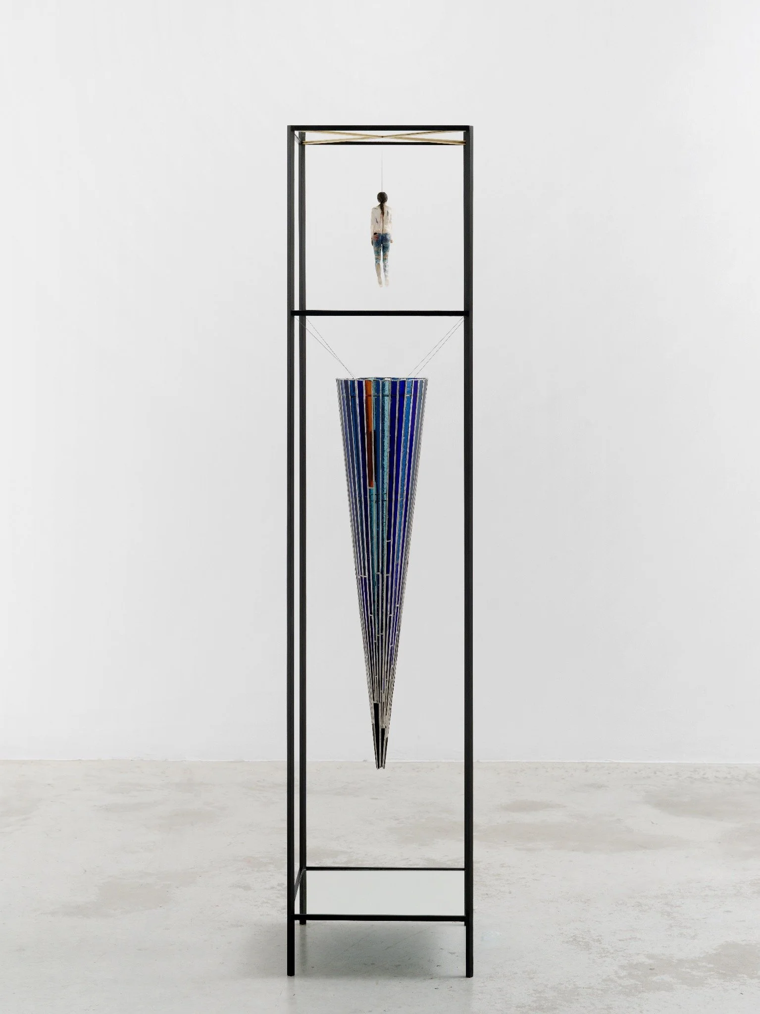 Helmut Stallaerts, Mary’s Dissolving, 2025, mixed materials, glass, wax, resin, mirror, 191 x 41.5 cm