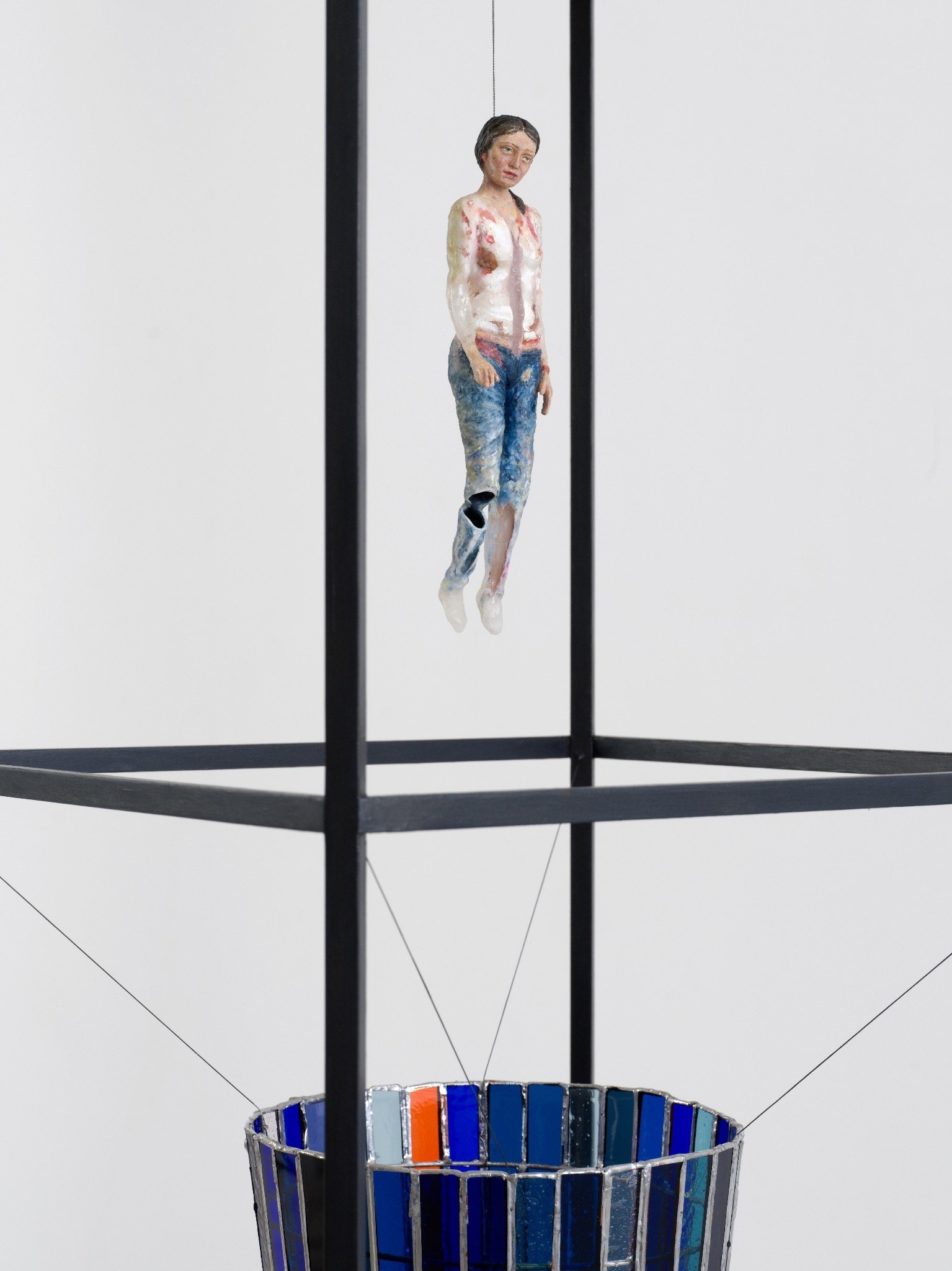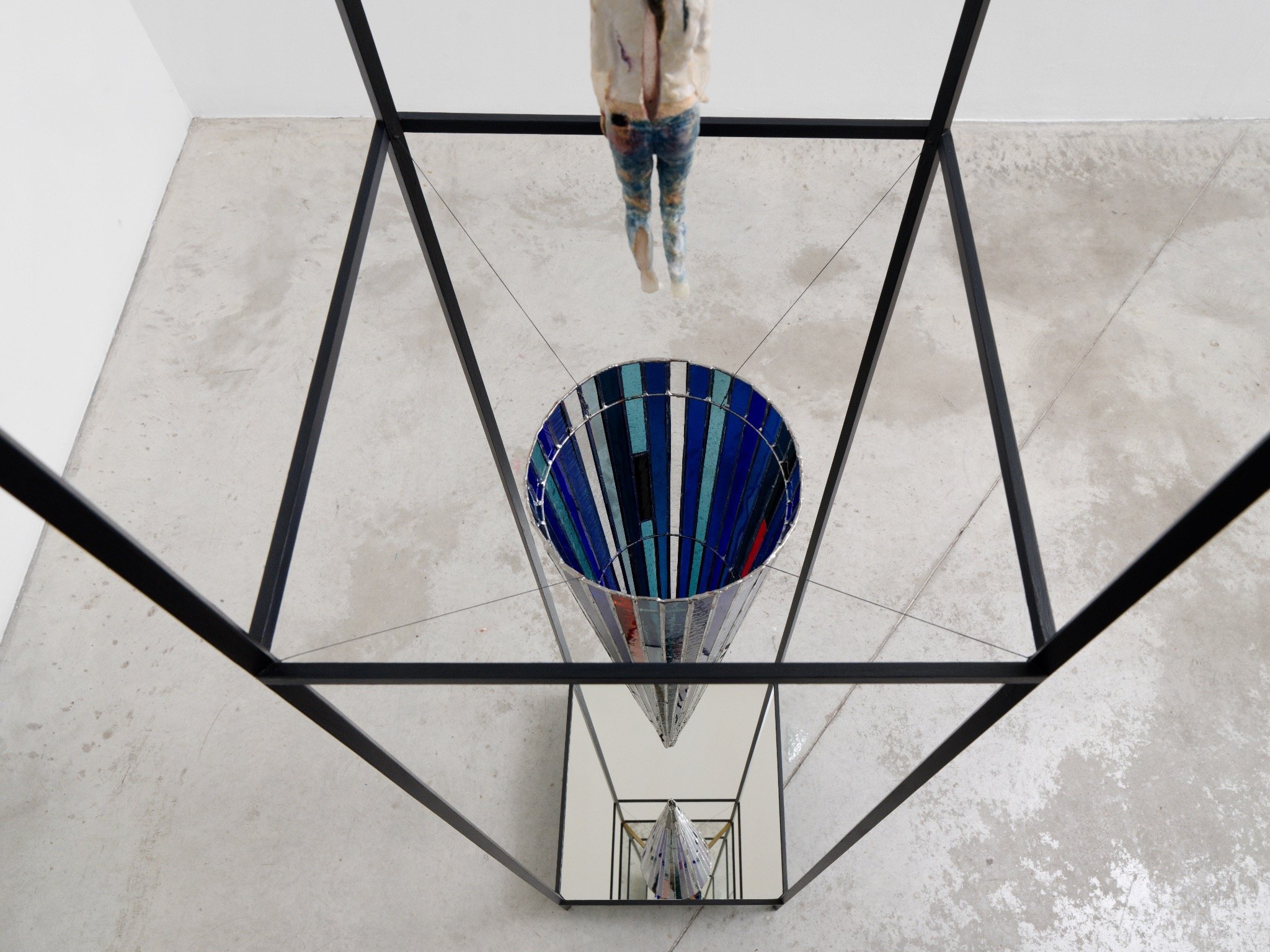 Helmut Stallaerts, Mary’s Dissolving, detail view, 2025, mixed materials, glass, wax, resin, mirror, 191 x 41.5 cm