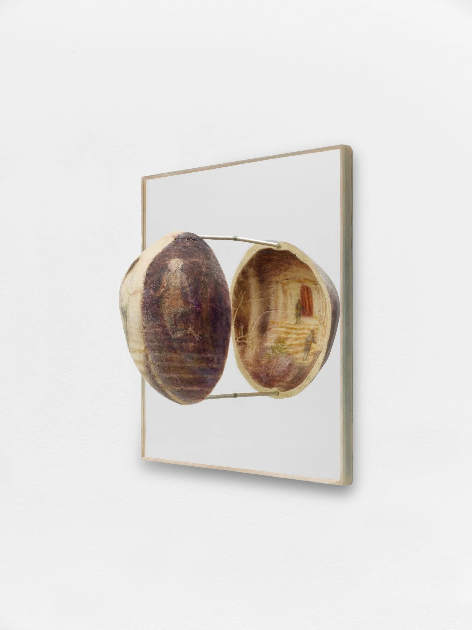 Helmut Stallaerts, Lin, 2025, oil on skull, mirror, resin, 28 x 31 cm